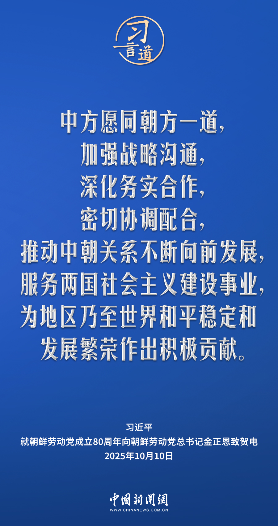 习言道|推动中朝关系不断向前发展来源:中新网2025-10-10 14:16:54 10月10日,中共中央总书记习近平致电朝鲜劳动党总书记金正恩,祝贺朝鲜劳动党成立80周年。编辑:项增有终审:马康华版权归原作者所有文章内容及图片请联系我们将及时处理