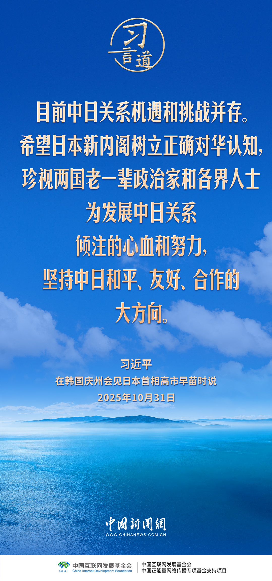 习言道|确保中日关系根基不受损、不动摇来源:中新网2025-11-01 08:58:09 当地时间10月31日,国家主席习近平在韩国庆州出席亚太经合组织第三十二次领导人非正式会议期间应约会见日本首相高市早苗。习近平指出——编辑:项增有终审:马康华版权归原作者所有文章内容及图片请联系我们将及时处理