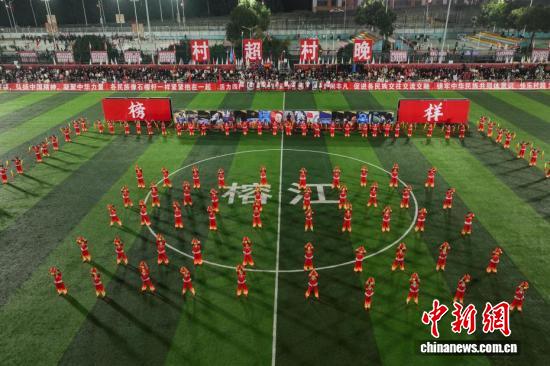 1月2日晚,2026年第四届贵州村超联赛开幕式暨村超村晚在贵州省榕江县“村超”球场举行,除了开幕式流程外,还进行了丰富多彩的节目演绎及无人机、烟花秀表演,现场热闹非凡。据悉,第四届贵州村超共有137支村级球队从田间地头、市井街巷集结而来,延续这场以“村味”为本色的足球文化盛宴。图为开幕式现场。(无人机照片)