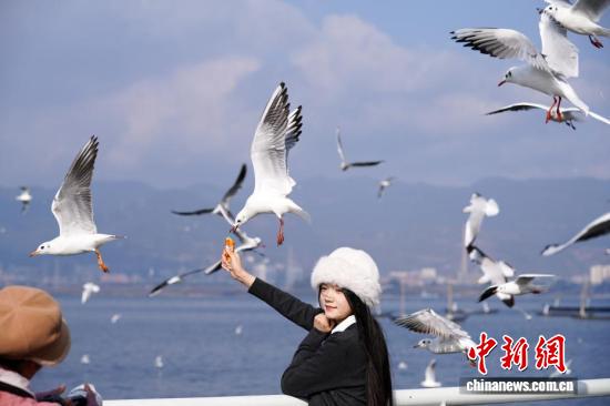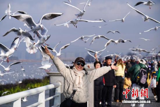 昆明气温回升 民众滇池边喂鸥赏景来源:中新网2026-01-10 15:18:23 1月9日,昆明天气放晴、气温回升,不少市民和游客来到滇池边观赏美景、投喂红嘴鸥。编辑:曾传娟终审:马康华版权归原作者所有文章内容及图片请联系我们将及时处理